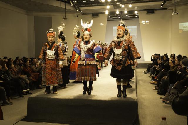 随着民族服饰展示接近尾声,能歌善舞的学员们唱起了贵州当地的民族歌曲,极具特色的歌声向在场所有人传递出贵州浓浓的民族文化和民族自信。活动上展示的21件结对创作作品由我校服装设计专业学生和非遗班学员共同完成,专业学生主要负责服装整体设计制作,各位学员参与其中并负责图案刺绣的设计创作。在此过程中将传统民族图案应用于具有时尚感的现代服饰中,或在传统图案基础上进行现代化设计,创作出民族与时尚碰撞结合的服饰。