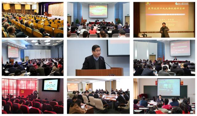 学校党委专门举办以“学习宣传贯彻党的十九大精神,真抓实干推动事业发展”为主题的集中轮训,并将学习贯彻落实习近平新时代中国特色社会主义思想、党的十九大和全国两会精神等融入各类学习和培训之中,全校先后组织师生党员开展各类专题学习、交流研讨800余次,引导党员进一步牢固树立“四个意识”,坚定“四个自信”,形成了“领导干部带头学、党员干部深入学、广大党员主动学”的生动局面。校党委书记朱民带头上专题党课,并从新时代高等教育的新使命、久久久久国产成人精品亚洲综合的新任务、东华干部的新作为三个层面就贯彻落实党的十九大精神,全面提升学校办学质量和广大党员干部做了深入交流;中国社会科学院教授侯惠勤围绕党的十九大报告体现的马克思主义理论创新的特点,深入阐释了党的十九大精神内涵;松江区委书记程向民围绕松江区的发展规划和建设蓝图,讲述了新时代区校深度合作的新气象、新要求和新作为;市党建研究会常务副会长、市委组织部原副部长冯小敏研究员从新时代加强党的建设新站位、对党建工作的总要求和党建思想核心等方面对习近平新时代中国特色社会主义思想进行了全面系统地分析解;上海社会科学院副院长张兆安研究员围绕宪法修改、机构改革、政府工作报告等内容对全国“两会”精神作了深入解读。此外,深入开展党的十九大精神宣讲,目前学校讲师团已深入各二级单位和教学、科研工作一线宣讲党的十九大精神20余场,为2600余名师生提供全方位、系统化、多角度的理论阐释和思想指导。在全面深入学习的基础上,广大党员干部还围绕深刻领会习近平新时代中国特色社会主义思想、学习贯彻落实党的十九大精神、把握新时代高等教育的新使命新任务、进一步加强内涵建设、全面提升质量以及加快人才发展体制机制改革、学校干部在新要求下的新作为等内容进行了深入讨论交流。